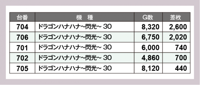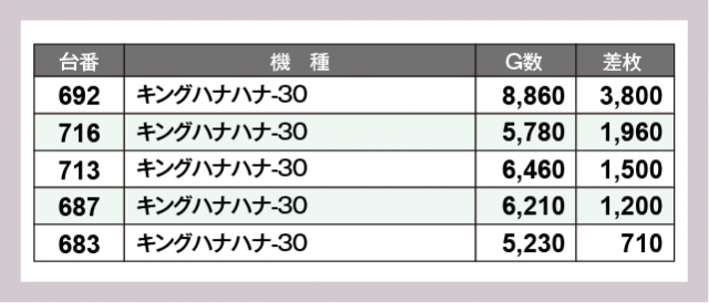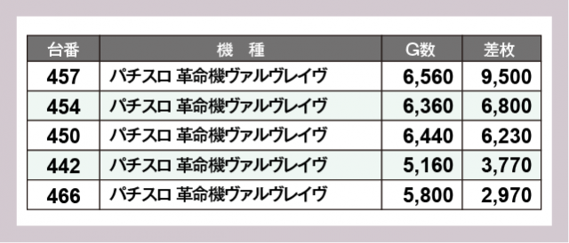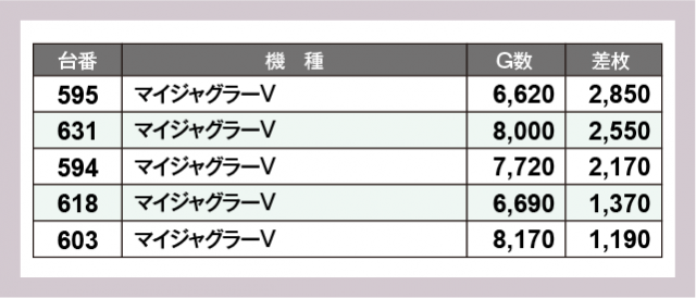 ※差枚数順に掲載しています