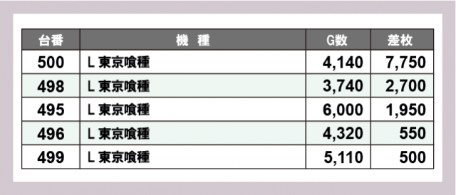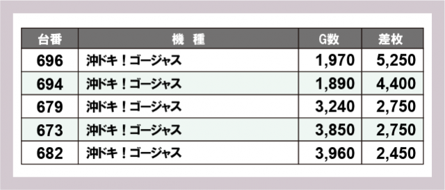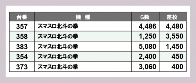 ※差枚数順に掲載しています