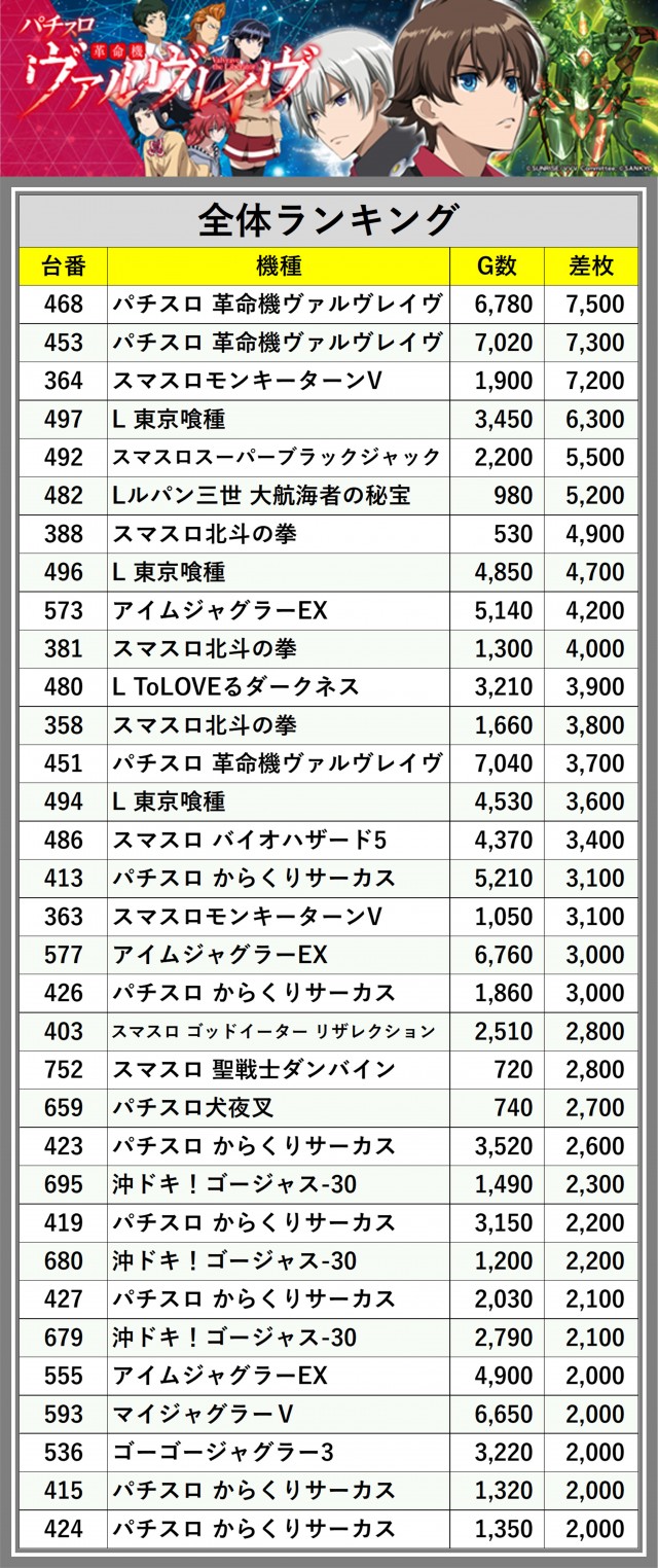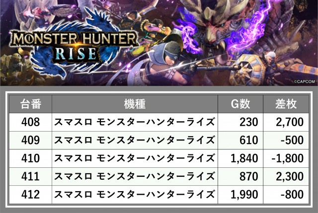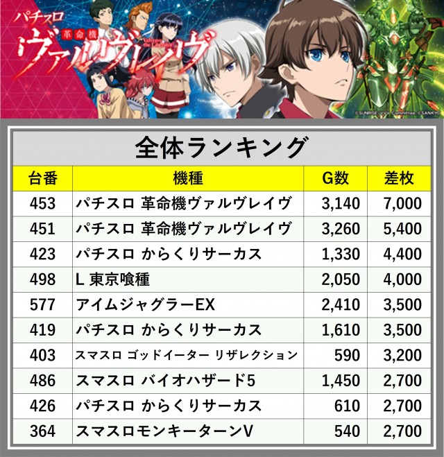 厳選された取材対象機種をはじめ、その他スロット全体から好記録が飛び出した!プレイヤーが楽しんだ1日を下記データにて振り返ってみて欲しい。