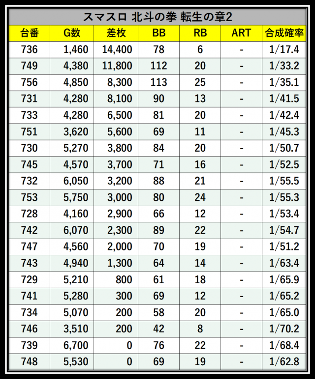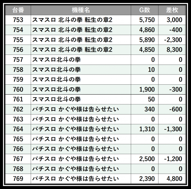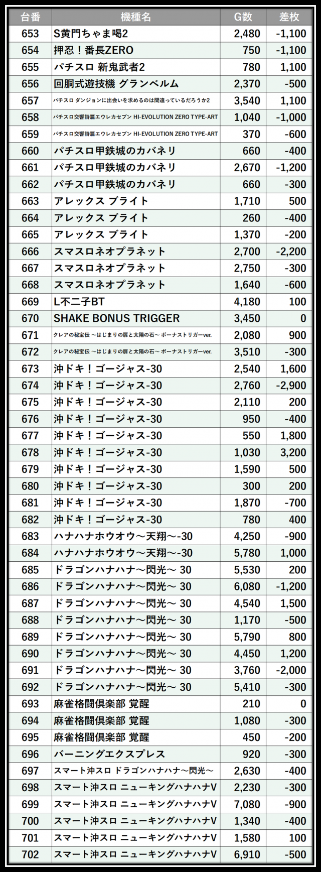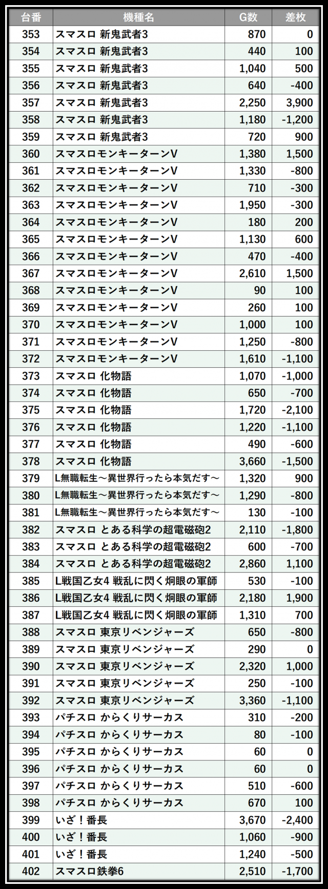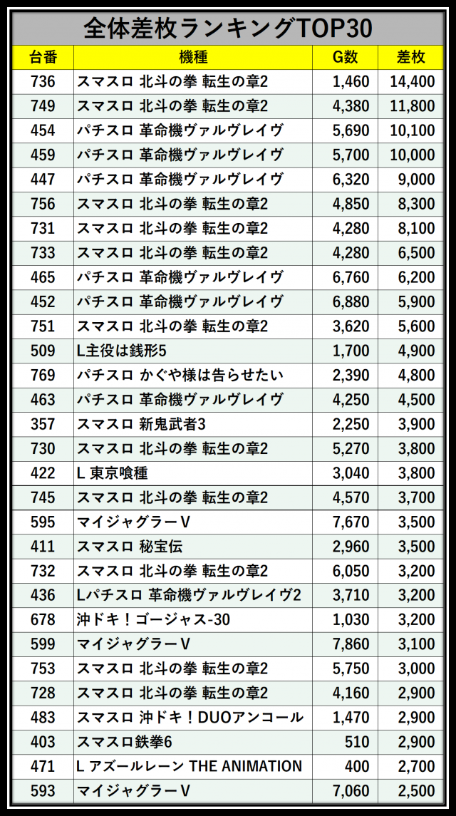 ※差枚数順に掲載しています