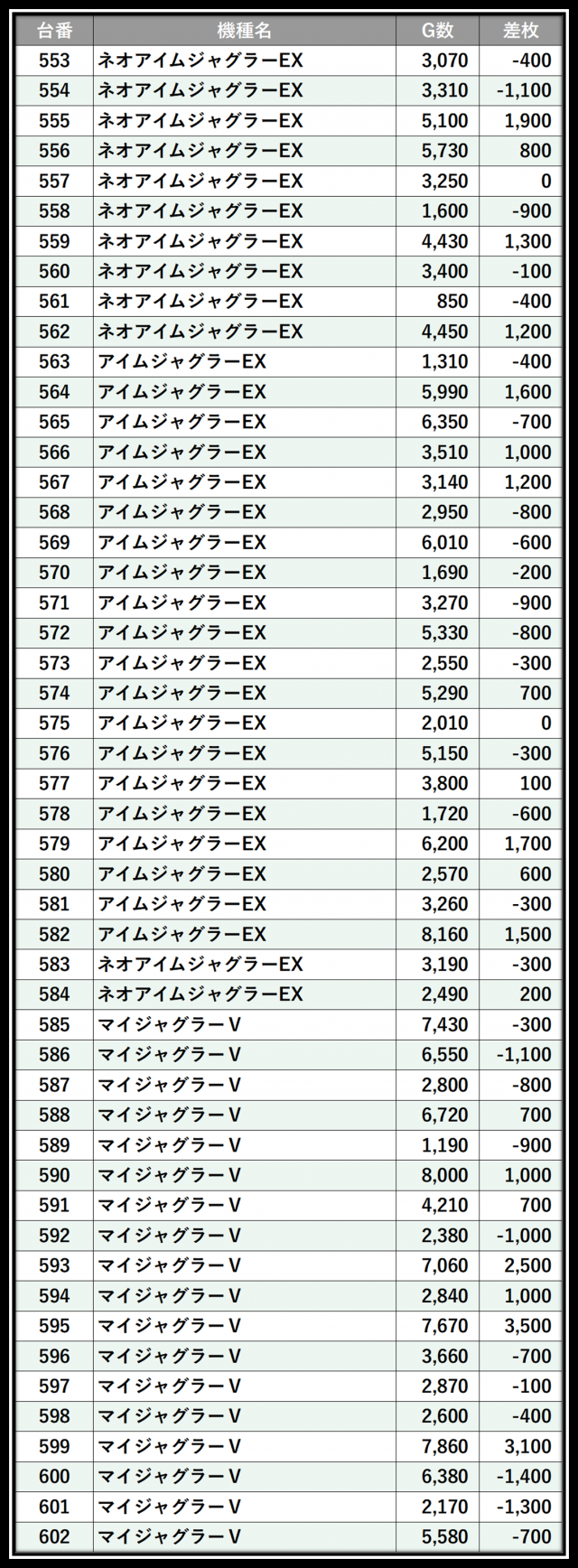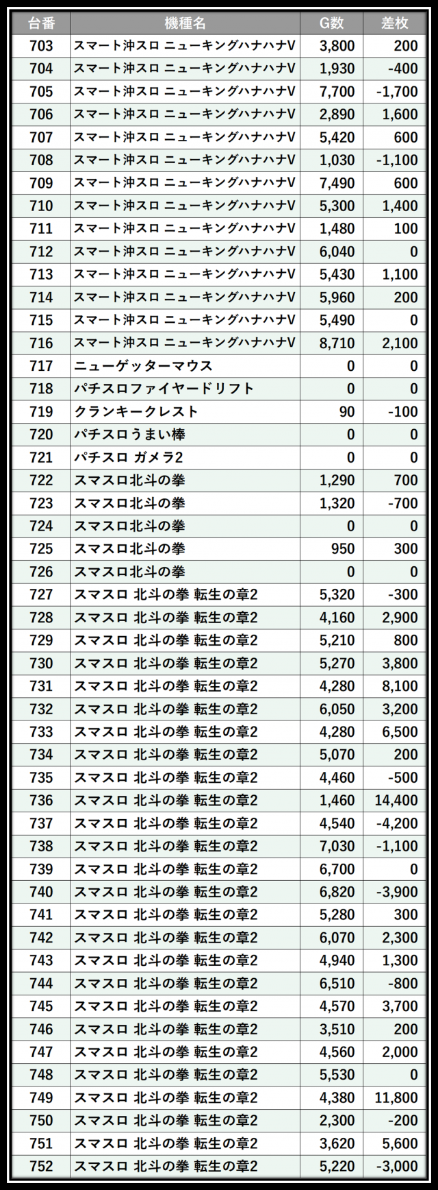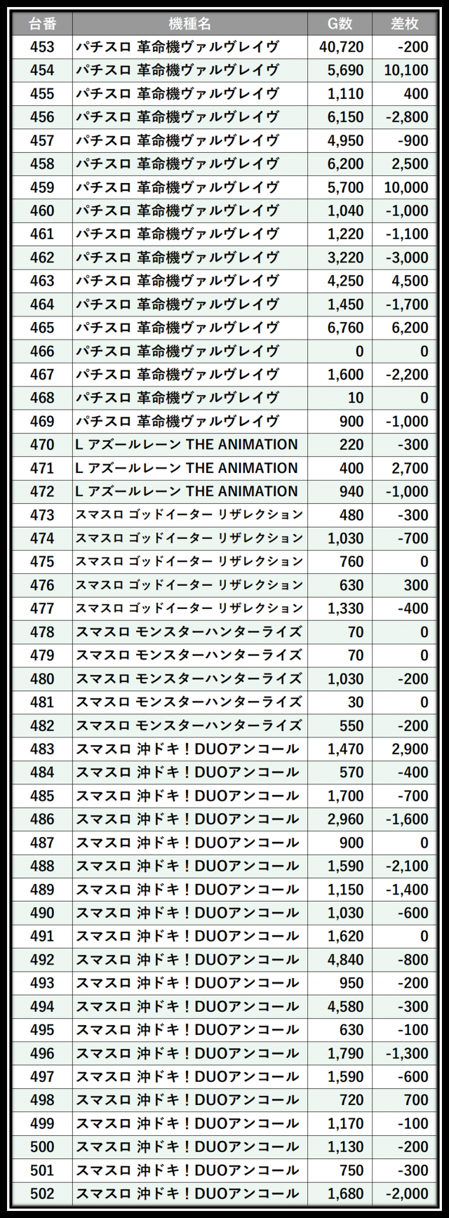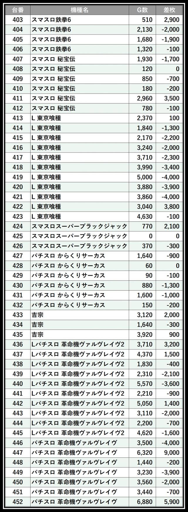 ※差枚数順に掲載しています