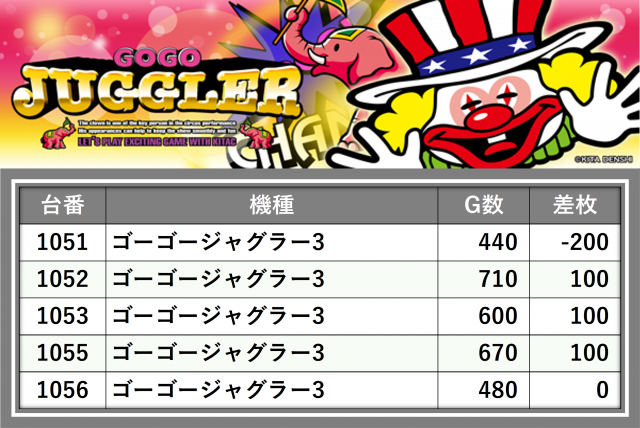 厳選された取材対象機種をはじめ、その他スロット全体から好記録が飛び出した!プレイヤーが楽しんだ1日を下記データにて振り返ってみて欲しい。