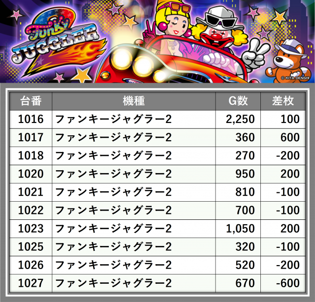 ※台番順に掲載しています