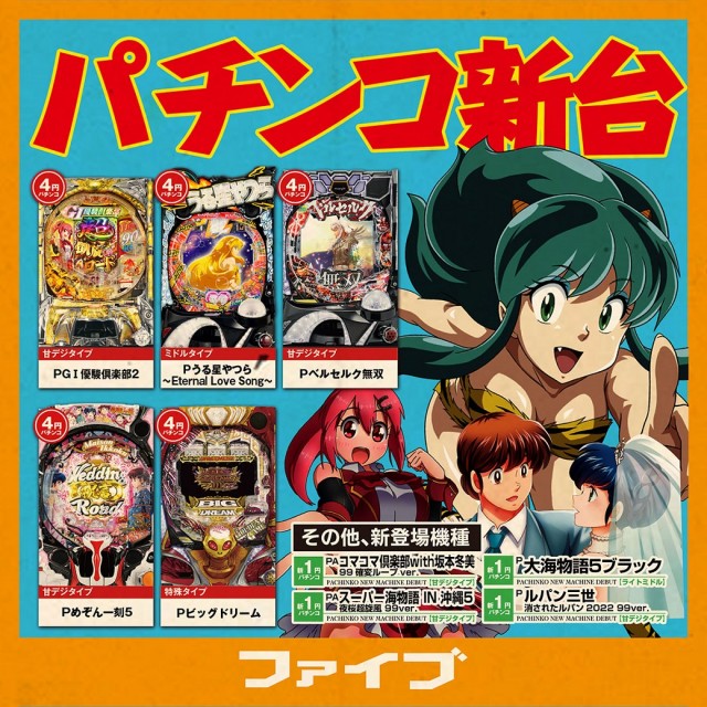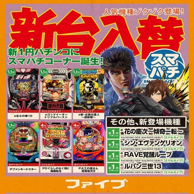 1.111円パチンコ:108台 4円パチンコ:72台 6.25円スロット:36台 20円スロット:72台 |