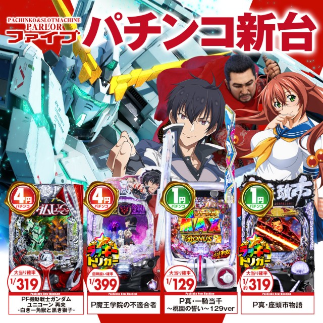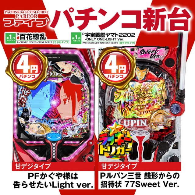 1.111円パチンコ:108台 4円パチンコ:72台 6.25円スロット:36台 20円スロット:72台 |
