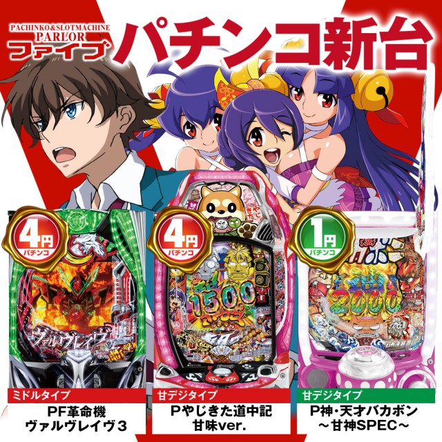 1.111円パチンコ:108台 4円パチンコ:72台 6.25円スロット:36台 20円スロット:72台 |