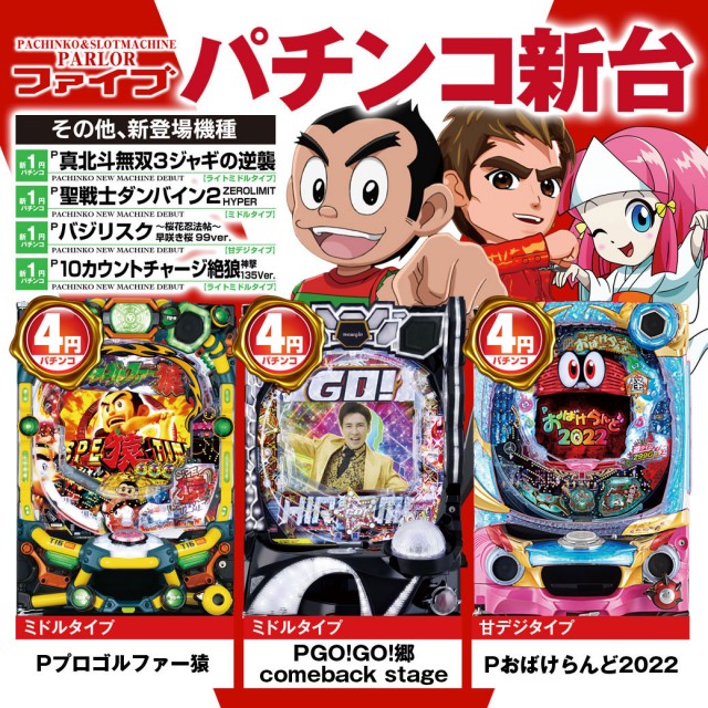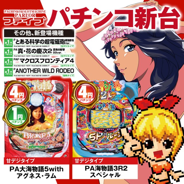 1.111円パチンコ:108台 4円パチンコ:72台 6.25円スロット:36台 20円スロット:72台 |