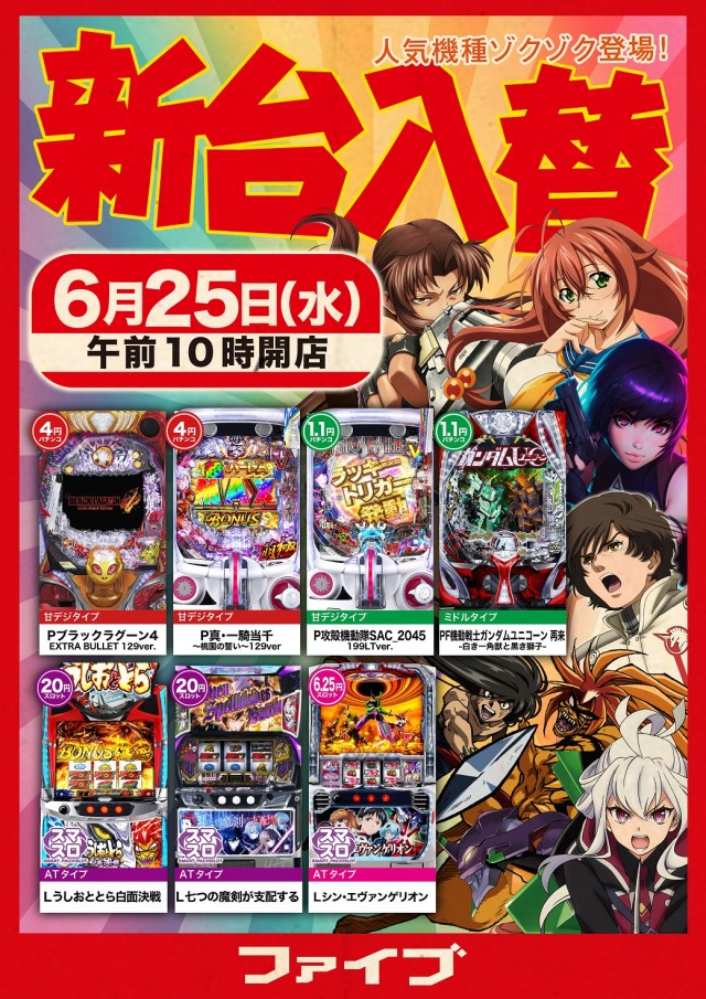 1.111円パチンコ:108台 4円パチンコ:72台 6.25円スロット:36台 20円スロット:72台 |