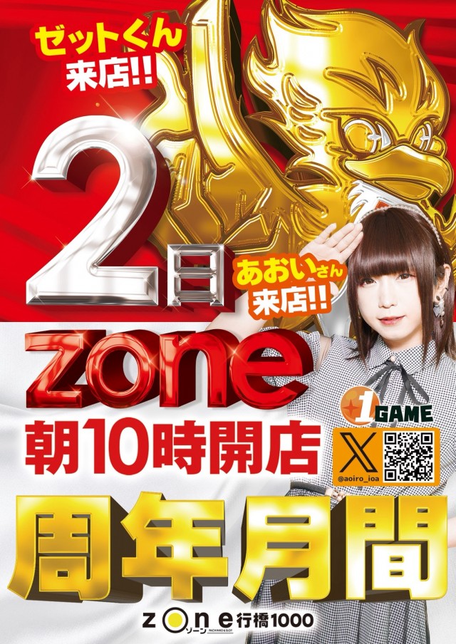 ♚ゾーン行橋1000♚周年月間👑2日1GAMEあおいさん来店