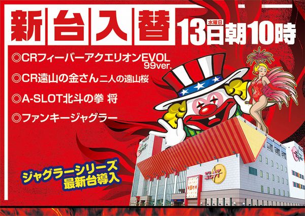 13日(水)新台入替!朝10時開店!4機種22台道入!!