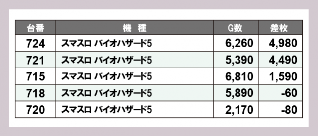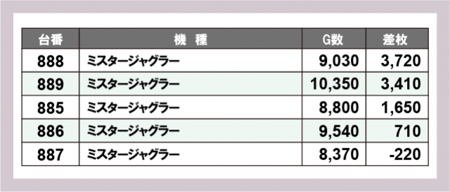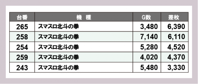 ※差枚数順に掲載しています