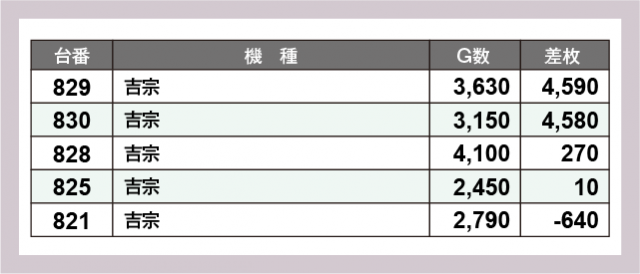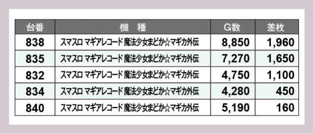 ※差枚数順に掲載しています