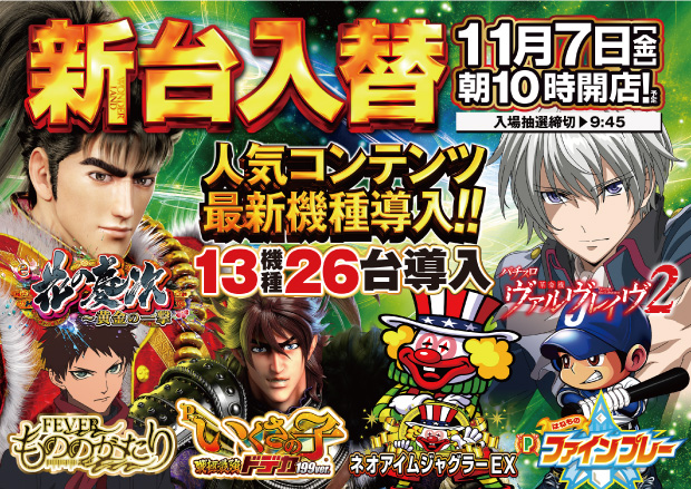 WL小郡三沢店 11月7日(金)新台入替 朝10時開店!