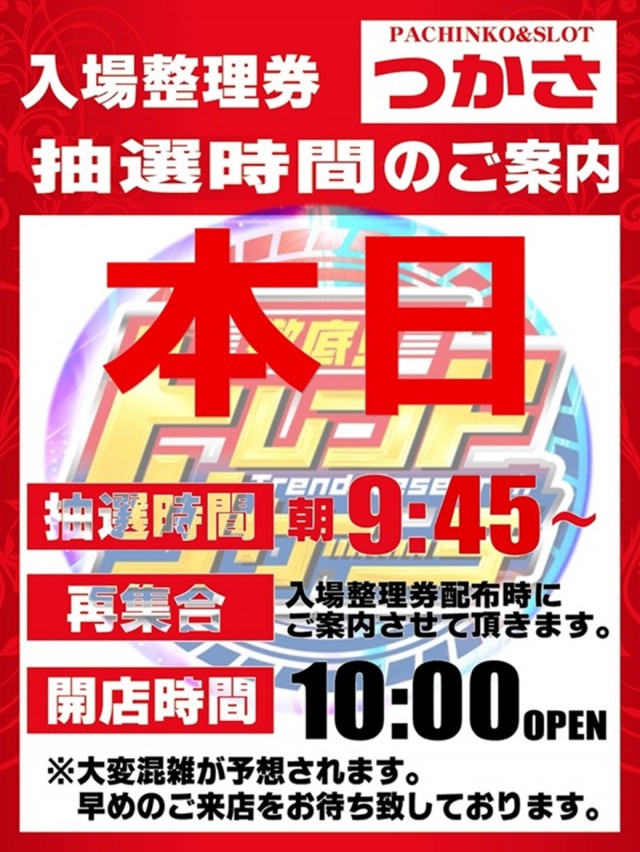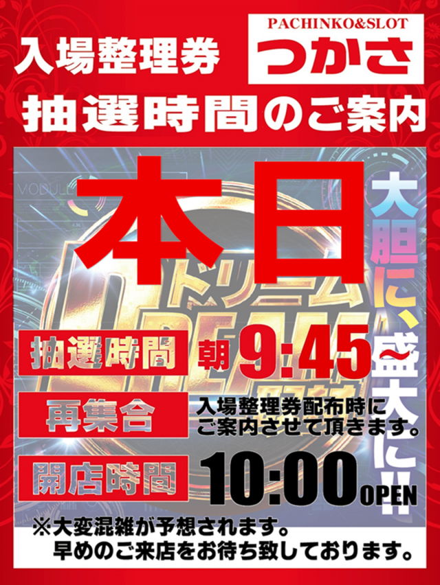 本日は早朝抽選会より是非‼