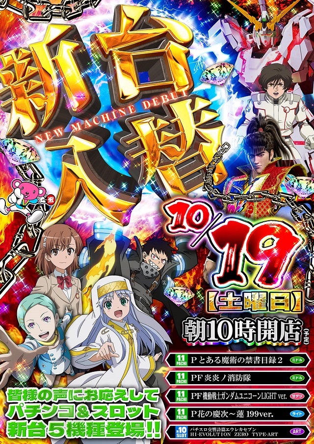 明日、店休日。10月19日新台入替10時開店!!