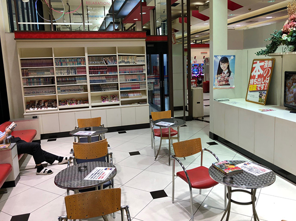 座席数の多いレストスペースは、ゆったりとくつろげそうな印象。幅広いジャンルの漫画本があるので、空き台を待つ時間なども楽しく過ごせそうですねっヽ( ´▽`ヽ)