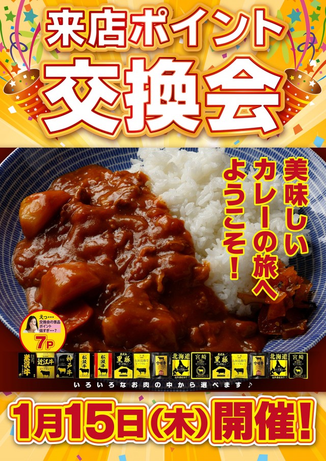 本日1月15日(木)『来店ポイント交換会』開催10:00開店