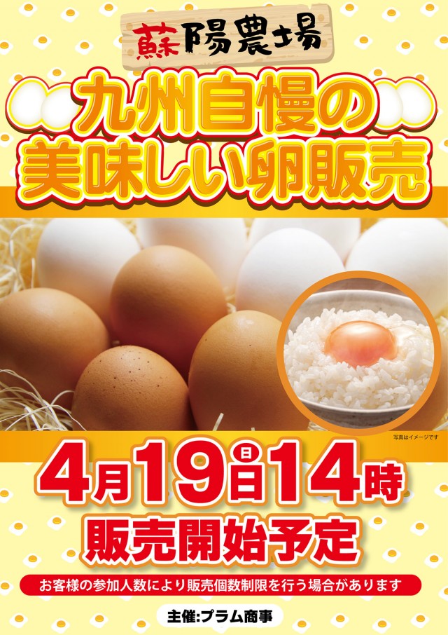 本日4月19日(日)『抽選入場』『卵販売会開催』10時開店!