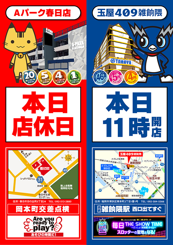 1000円/920玉パチ:123台1000円/230玉 パチ:192台 |