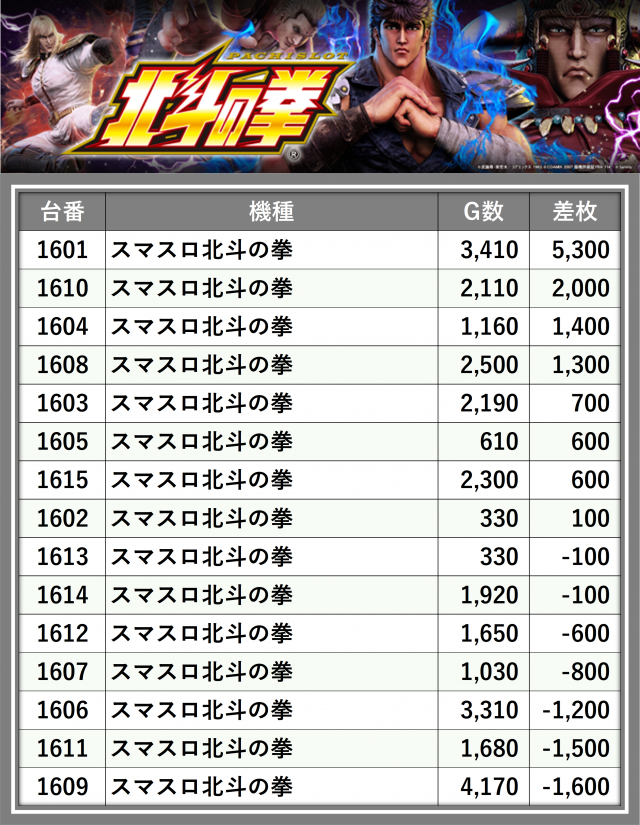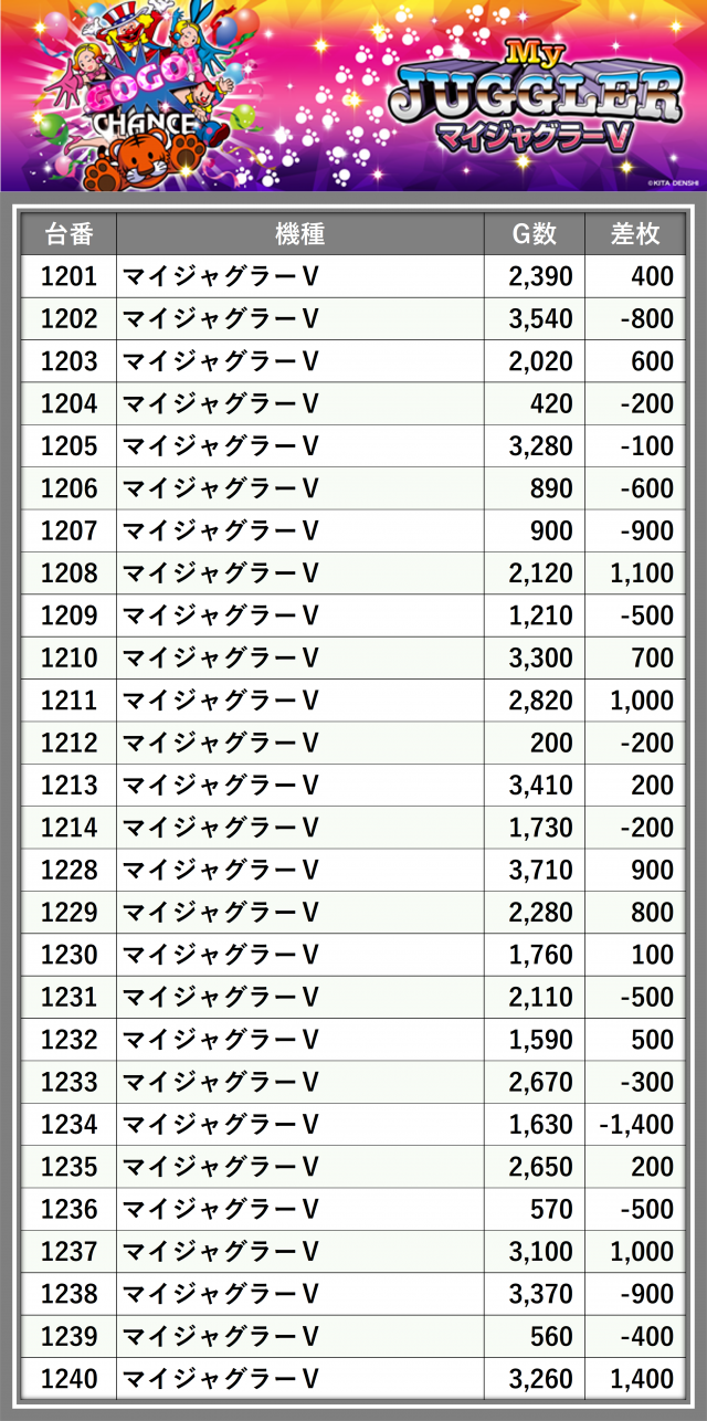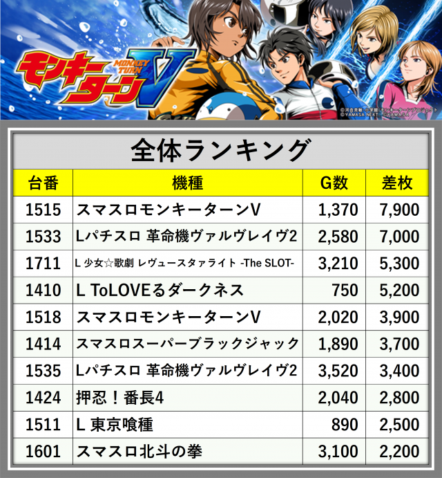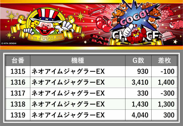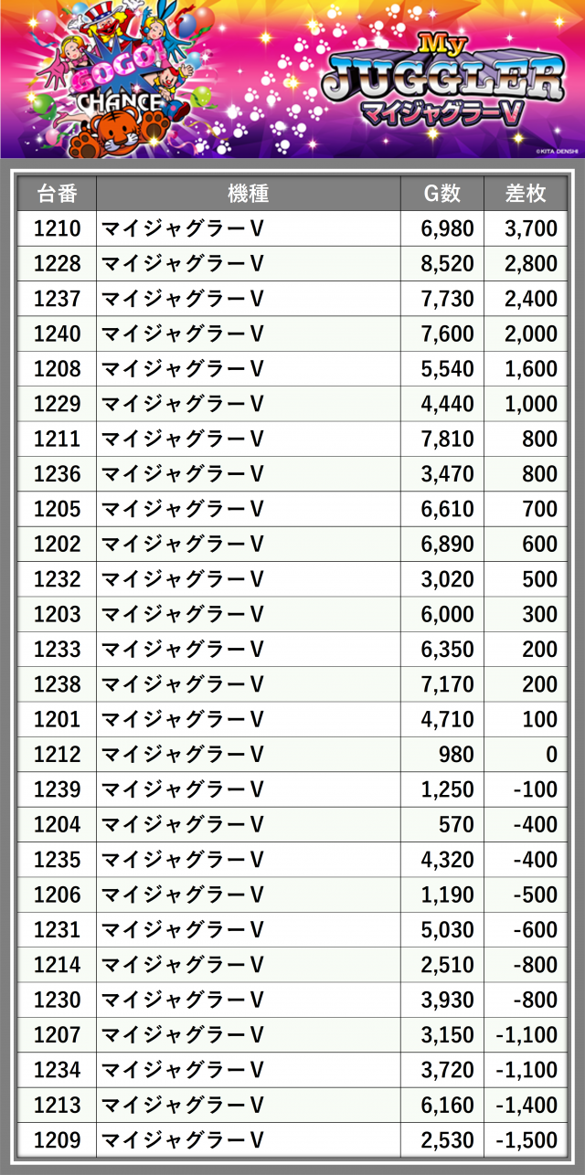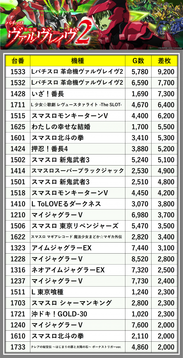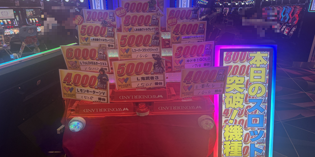 厳選された取材対象機種をはじめ、その他スロット全体から好記録が飛び出した!プレイヤーが楽しんだ1日を下記データにて振り返ってみて欲しい。