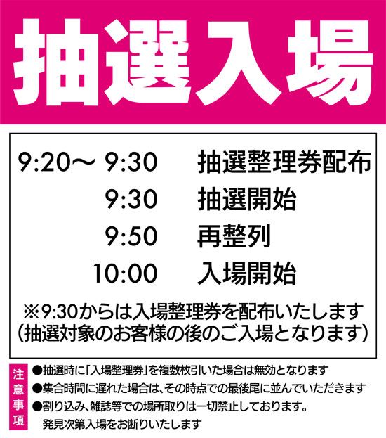 本日より3日間 抽選入場🌟🌟🌟🌟