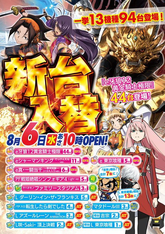 明日 8月 6日 水曜日🌟新台入替🌟朝10:00オープン
