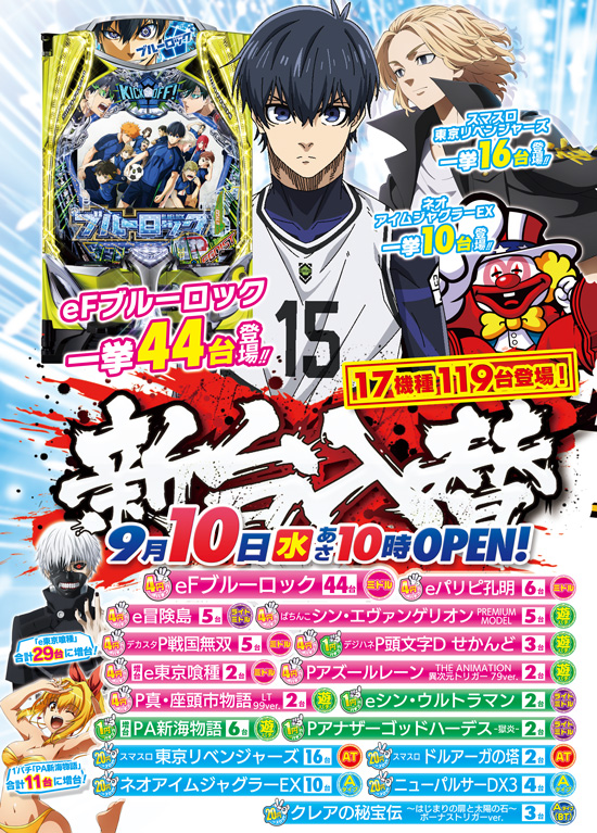 明日 9月 10日 水曜日🌟新台入替🌟朝10:00オープン