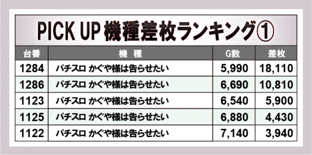 2台の万枚OVERが発生した『パチスロ かぐや様は告らせたい』を筆頭に人気機種たちがコンスタントに大当りを積み重ね、右肩上がりのグラフを描いていたのは何よりも好感を覚えるポイントだ。