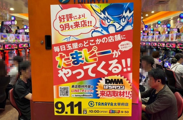 9月1日、『玉屋太宰府店』にて玉屋×DMMぱちタウンのコラボ企画「たまピー来店取材」が実施された。前回実施時では万枚OVER台を筆頭にまとまった出玉を獲得する台が多数存在していた故、この日朝から訪れたファンは大きな期待感を抱いている様子だった。さっそく以下から出玉詳細データとともに、当日の様子を振り返っていこう!