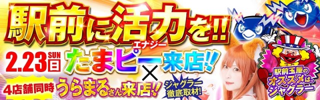 2月23日、「玉屋太宰府店」「玉屋409雑餉隈」「玉屋555大橋店」「玉屋室見店」の4店舗にて『たまピー来店取材』が合同実施された。約1ヶ月ぶりのジャグラー徹底取材となるわけだが、果たしてどのような1日になったのか…さっそく詳細データとともに、店内の様子をお伝えしていくぞ!