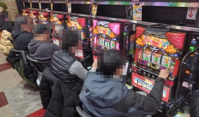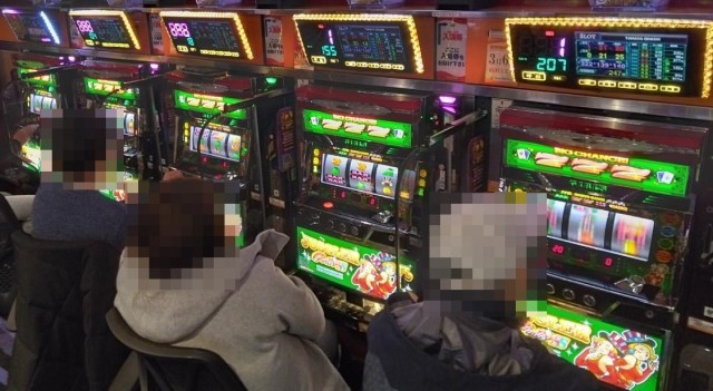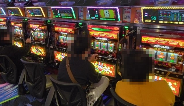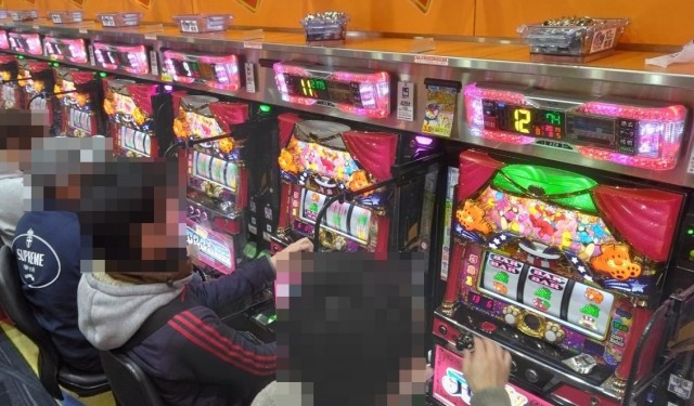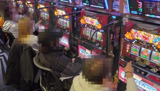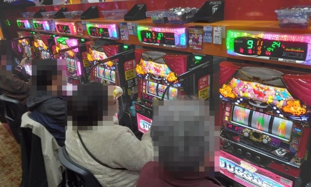 「玉屋555大橋店」では、いずれもじっくりと打ち込まれた形跡を確認できる。その中で『マイジャグラーⅤ』は4,000枚近い熱気を放っており、存在感を大きくアピールしていた。