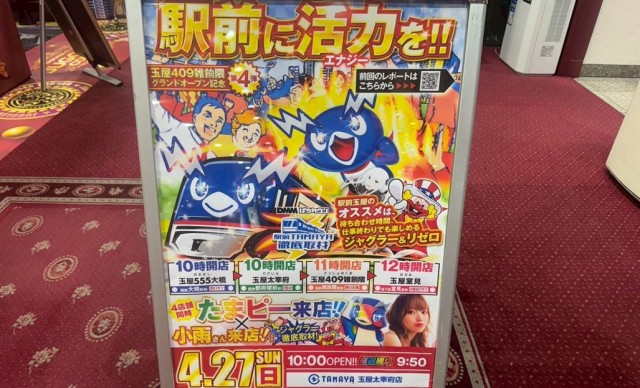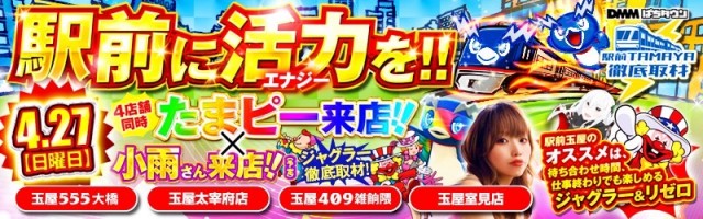 4月27日、「玉屋太宰府店」「玉屋409雑餉隈」「玉屋555大橋店」「玉屋室見店」の4店舗にて『駅前TAMAYA徹底取材』が合同実施された。約1ヶ月ぶりの実施ということで駆けつけたファンは心を躍らせていたのが印象的だ。それは同店も同じで、久しぶりの一戦に緊張の様子を覗かせながらも、力強く意気込んでいたのが目に焼きつく。果たしてどのような1日になったのか…さっそく詳細データとともに店内の様子をお伝えしていくことにしよう!