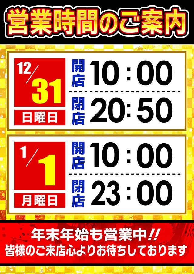 9:00~9:30抽選参加配布(場所:立体駐車場1階)、9:30抽選開始 ※時差オープンの場合は、抽選時間変更有り |
