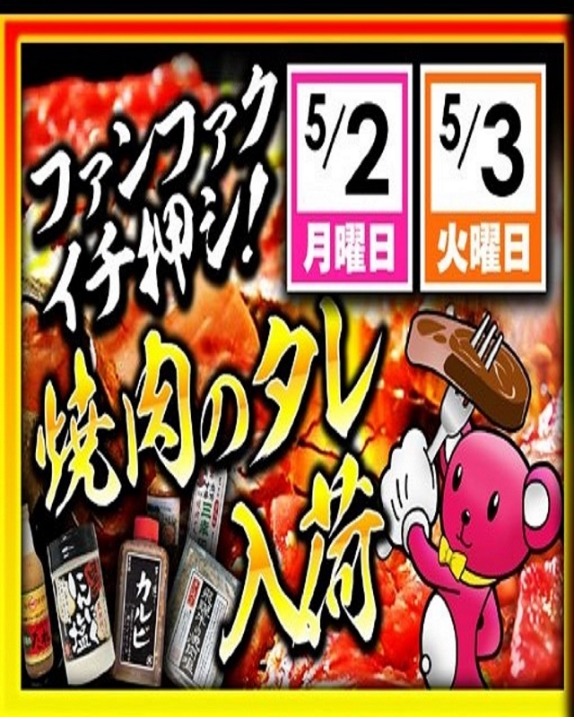 明日、10時開店、焼肉のたれ入荷♪~抽選は9:30開始予定~