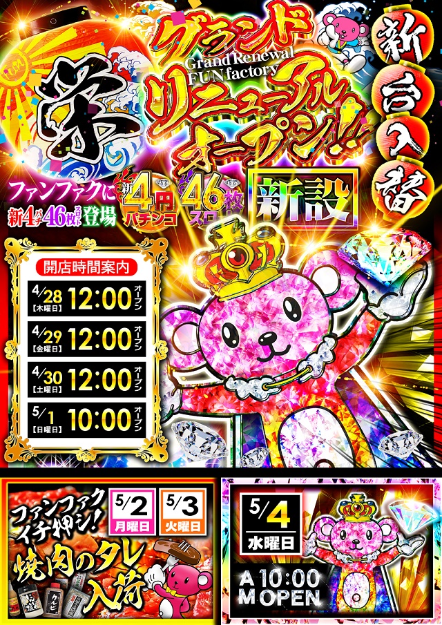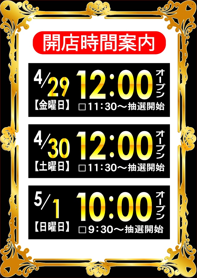 リニューアル3日目!本日は12時開店!抽選は11時30分~