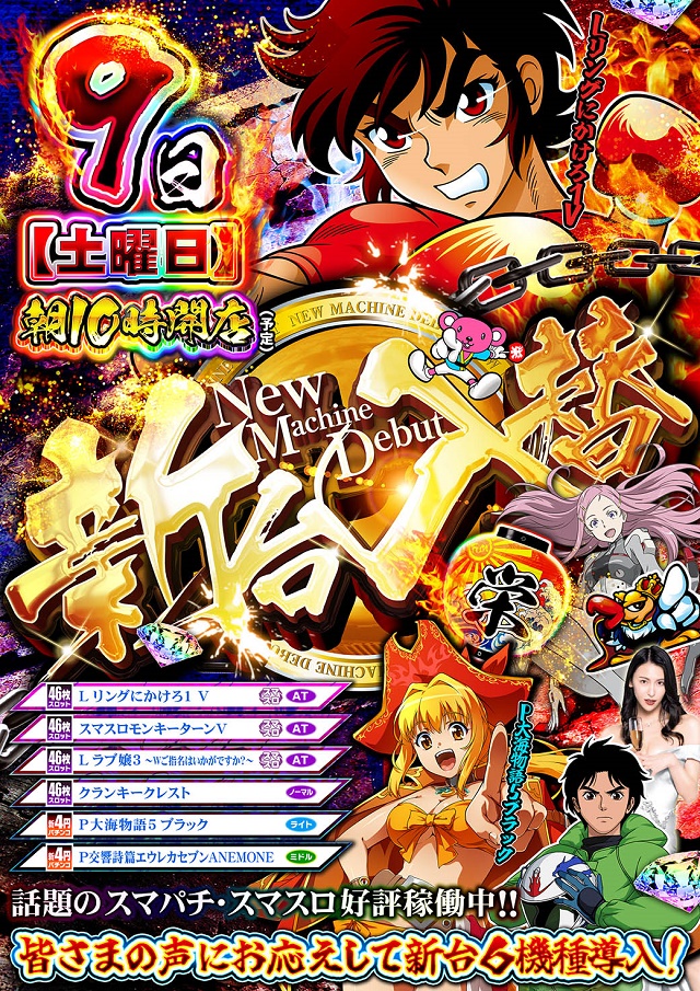 本日新台入替~抽選整理券9:00~抽選9:30~