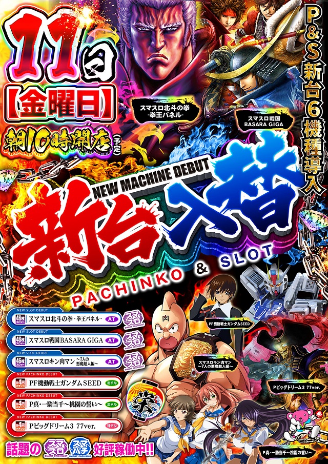 本日,新台入替~抽選整理券9:00~抽選9:30~