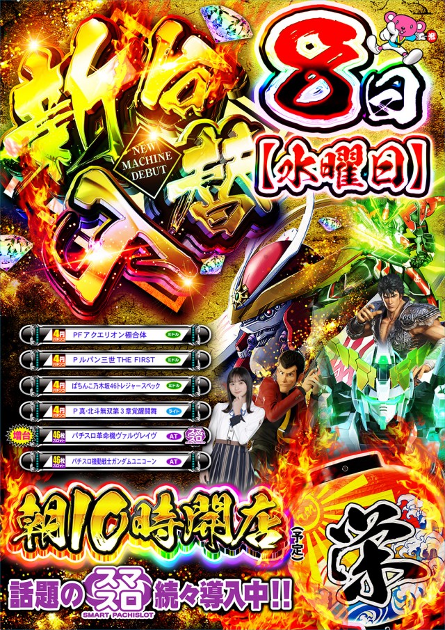 本日、新台入替10時開店!!