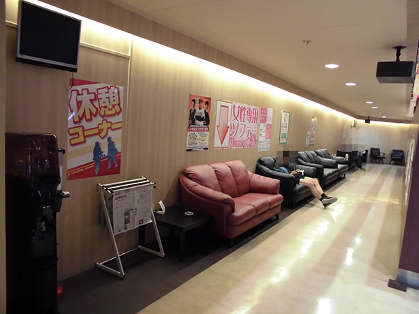 休憩コーナーには、ゆったりとくつろげそうなソファーやたくさんのマンガ本などが完備。利用しているプレイヤーからは、快適に過ごせている様子もうかがえた。