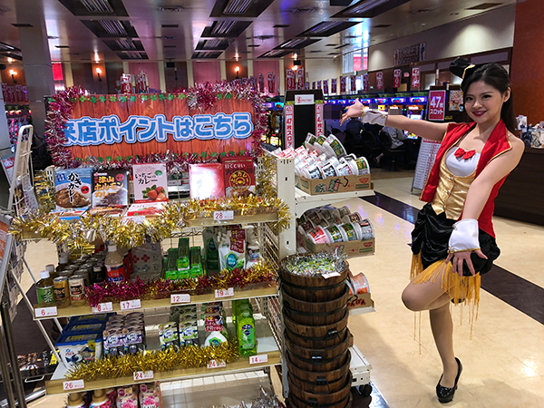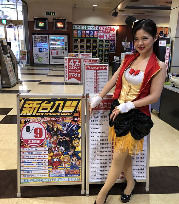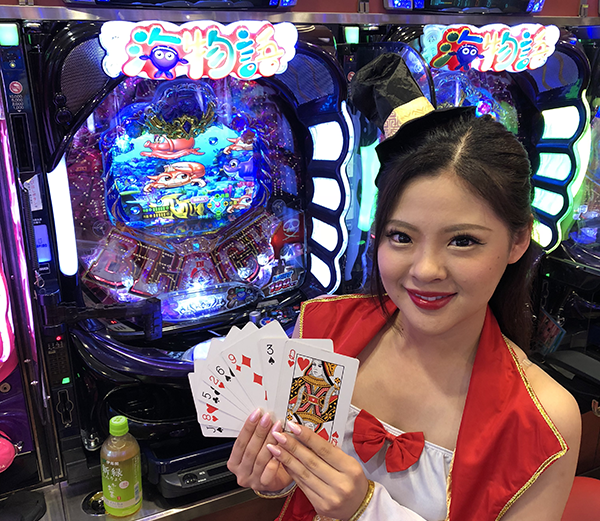 パチンコでは、琴美ちゃんも実戦中の海物語シリーズが大好評です。低貸し玉コーナーも含めて、たくさんの機種が盛況♪