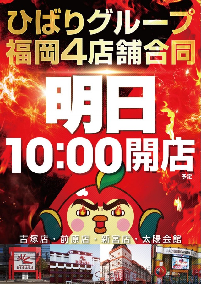 9時50分整理券配布 ※新台入替&7日17日27日は抽選入場 9時50分抽選開始♪ |