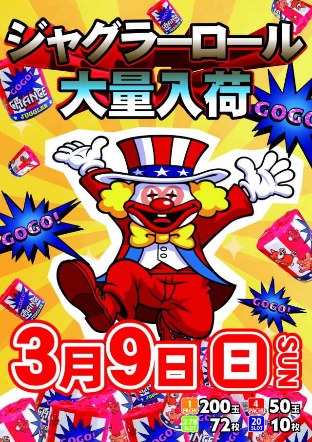 9時50分整理券配布 ※新台入替&7日17日27日は抽選入場 9時50分抽選開始♪ |