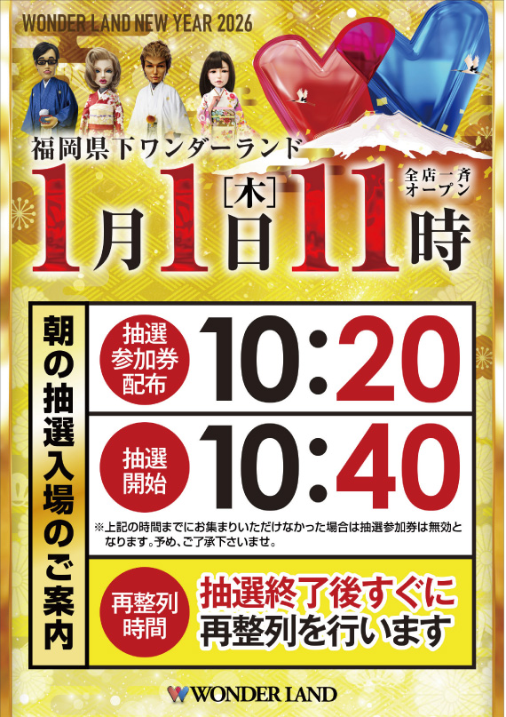 本日1月1日🌟🌟朝11時開店🌟🌟入場順番抽選10:40❗❗