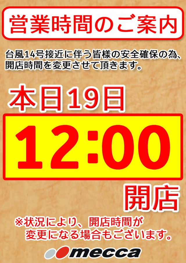 本日9月21日【店休日】🌹明日《新台入替》朝10時OPEN🌹