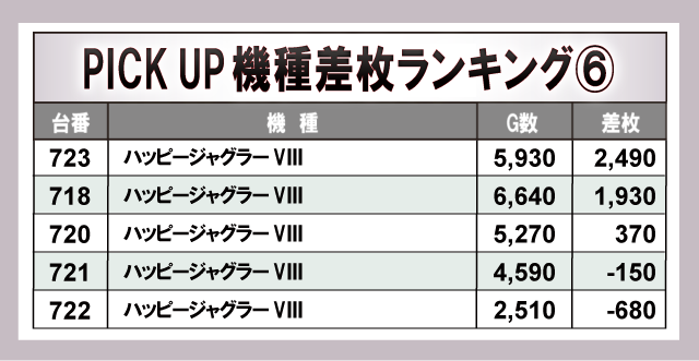 当日、特に盛り上がっていたのが上表の6機種だ。設置台数の多い『アイムジャグラーEX』は安定した結果を残し、大いに盛り上がりを見せていた!それだけでなく『スマスロスーパーブラックジャック』からは、全台プラス差枚数を達成しており、ファンを歓喜させた存在だったと言える。その他の機種も高い実力を発揮していたことが確認でき、しっかりと期待に応えていたと言えるだろう。