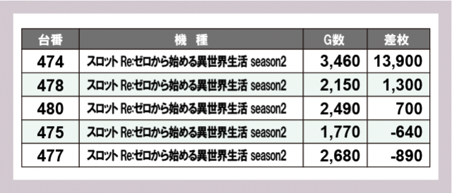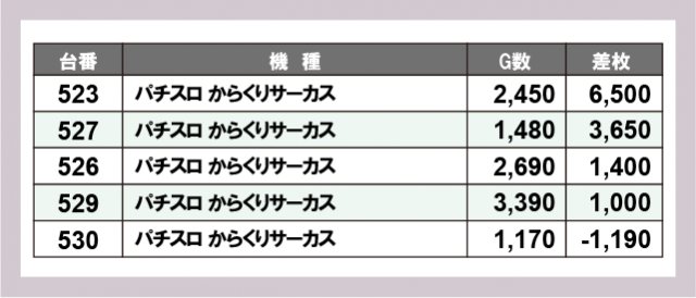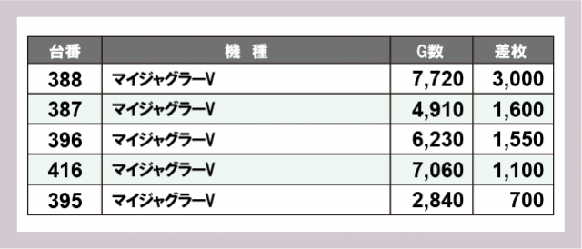 ※差枚数順に掲載しています