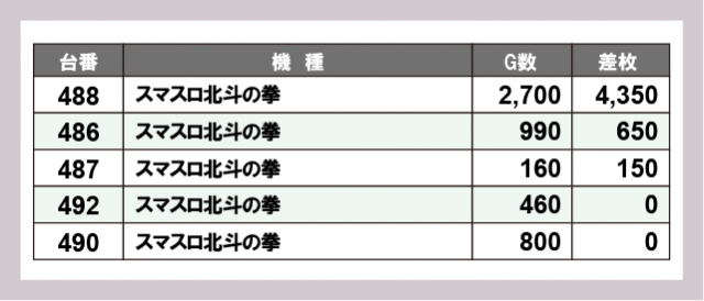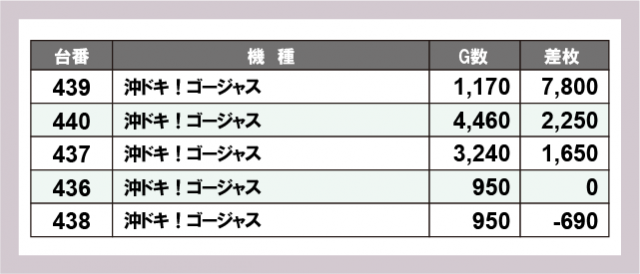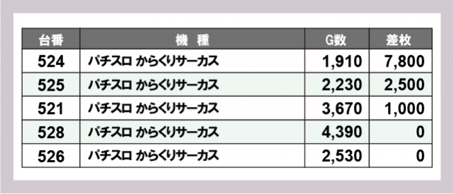 ※差枚数順に掲載しています