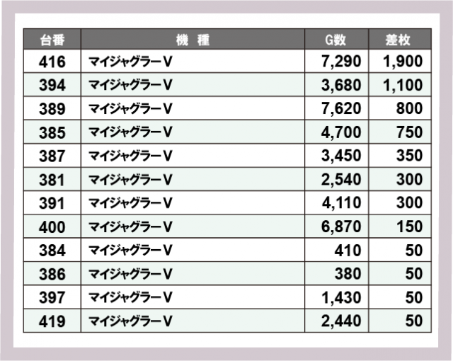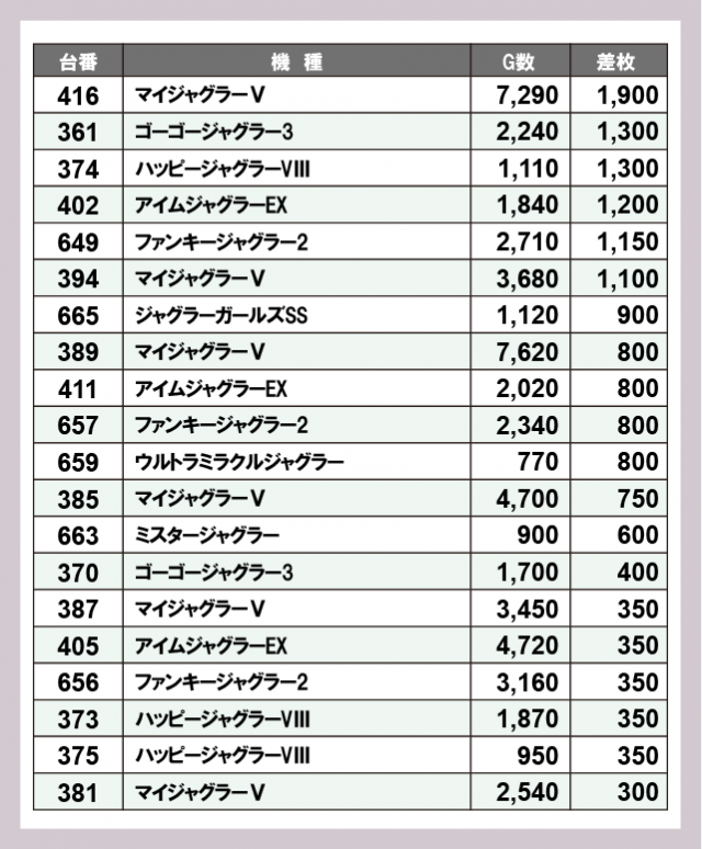 ジャグラー差枚ランキング