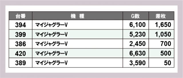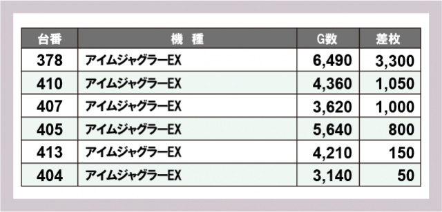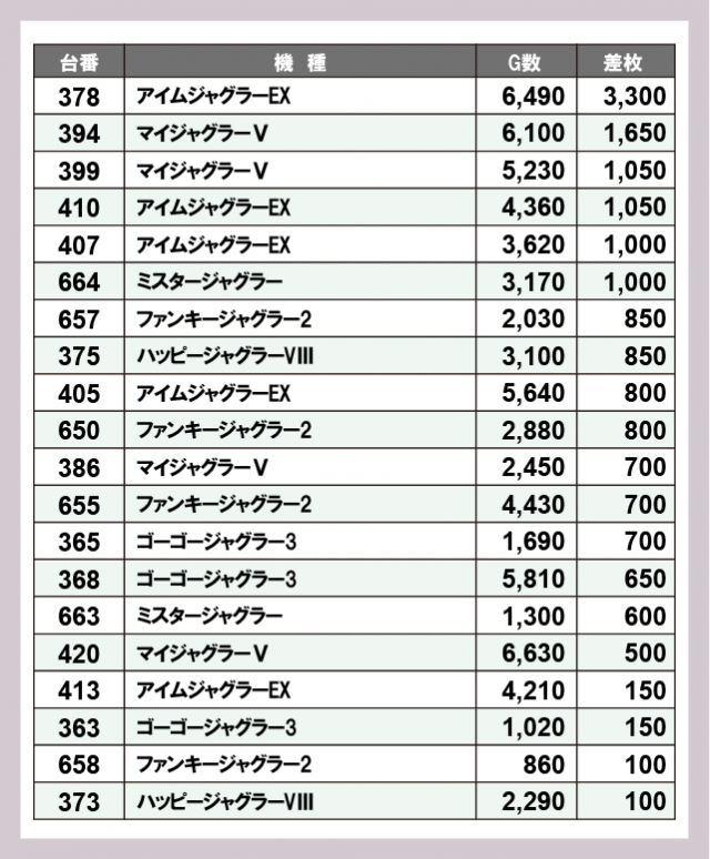 ジャグラー差枚ランキング