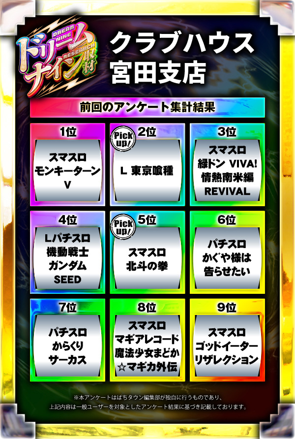 ※差枚数順に掲載しています